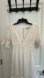 Chic cream maxi dress with lace details. Features ruffled sleeves and a flowing skirt. Ideal for elegant occasions.