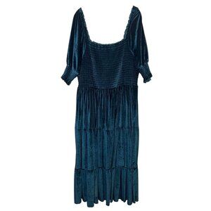 Baltic Born Dress 2X Green Velvet Milkmaid Tiered Maxi Smocked Festive Holiday