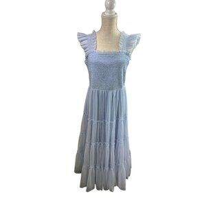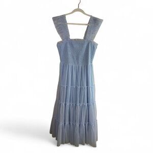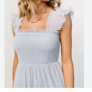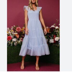 Baltic Born Dress Emma Smocked Tulle Midi Light Blue Sz XL Party Wedding