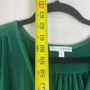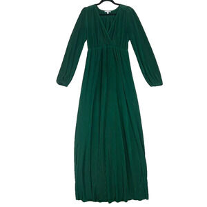 Baltic Born Dress Womens Large Green Athena Pleated Long Sleeve Maxi A Line