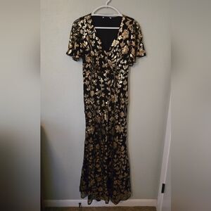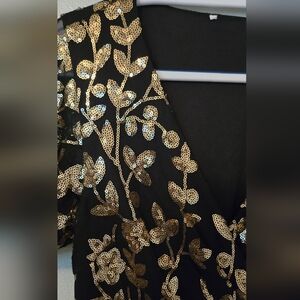 Black tulle material with Gold sequin detail