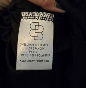 Self: 90% Polyester, 5% Spandex, and 5% PET