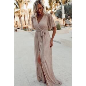 Baltic Born Grace Sparkle Maxi Dress Womens S Ivory Side Slit Floor Length