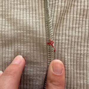 -Pre owned in like new condition. Random red thread on the back. Purchased that way.