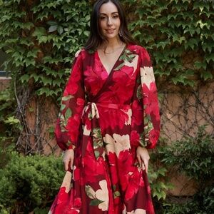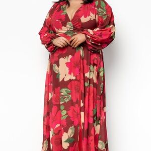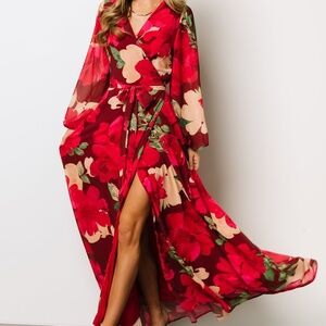 Baltic Born Katinka Wrap Maxi Dress | Burgundy Multi Floral Size LL