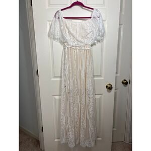 Baltic Born Lace Maxi Off the Shoulder White Cream Dress Small