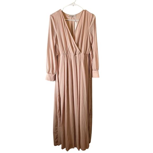 Baltic Born Lydia Maxi Dress Medium Pale Pink Faux Wrap Sheer Sleeves