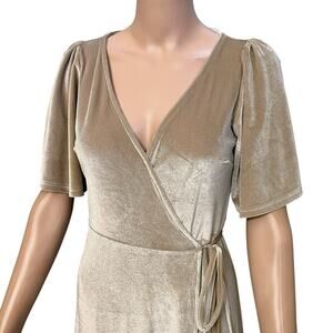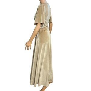 Baltic Born Megan Velvet Wrap Dress Small Maxi Champagne Flutter Sleeve Formal