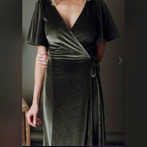 Beautiful olive velvet wrap dress from Baltic Born. I have both L and XL. New with tags, never worn. Great for bridesmaids, baby showers, fall wedding guests, other fall and winter events.