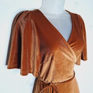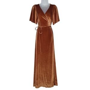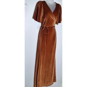 Baltic Born Meghan Velvet Wrap Maxi Dress Medium Spice Full Sweep Flutter Fall