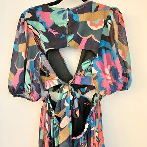 Baltic Born Open Back Floral Black Maxi Dress Bastina Size XL NWOT Flaws