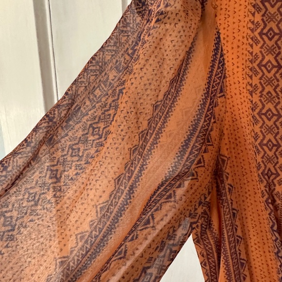This floaty number is fit for a faerie queen! a tiered maxi skirt and sheer sleeves give it an etheral quality, and the Autumnal hues make it perfect for when August slips away into September. Size is S.