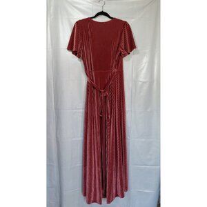 Baltic Born Ribbed Velvet Maxi True Wrap Dress XL Flowy Long Burgundy Formal