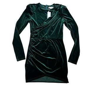 Baltic Born Short Mini Velvet Ava Pencil Dress Long Sleeve Dark Green Size Large