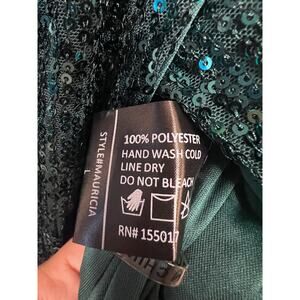 The Baltic Born Size LG Green Sequins Maxi Dress is a stylish and elegant choice for holidays or special occasions like weddings and parties. Made of polyester, this long dress features a V-neckline and is machine washable for easy care. The solid green color adds a pop of vibrancy, perfect for summer, fall, or spring events. With its maxi style and classy design, this dress is sure to make a statement and turn heads wherever you go.