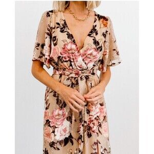 Baltic Born Uma Velvet Maxi Dress Beige Small Floral Shimmer NO BELT