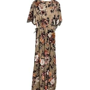 Baltic Born Womens Uma Velvet Maxi Dress Beige Small Floral Shimmer Short Sleeve
