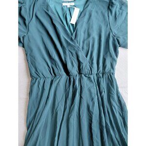 Baltic Born Vaughnie Chiffon Maxi Dress 2X Teal Belted Flutter Sleeve Front Slit