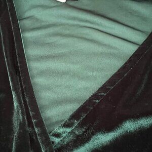 Elegant velvet maxi dress. Features wrap design and short sleeves. Perfect for special occasions.