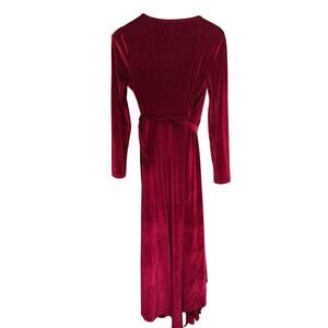 New with tags Baltic Born velvet wrap maxi dress in burgundy with subtle gold shimmer. Size Large. Features long sleeves, V-neck, adjustable waist tie, and stretch velvet fabric that drapes beautifully. Perfect for weddings, holiday parties, photoshoots, or formal events. Style with boots or heels, or layer with faux fur and statement jewelry for Thanksgiving, Christmas, New Year’s Eve, Valentine’s, Easter, and winter weddings. Washing/laundering recommended upon receipt.