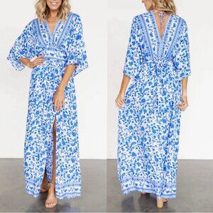 Baltic Born Watson Kimono Maxi Dress Blue White Size XL
