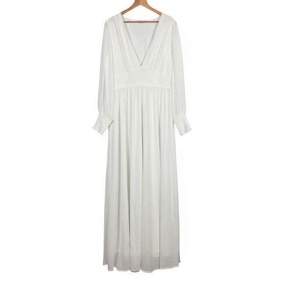 ๐ท๏ธ Brand: Baltic Born ๐ Size: 1XL (1X) ๐จ Color: White ๐ Style: Olivia Maxi Dress ๐งต Fabric: 100% Polyester (Chiffon Shell & Lining) ๐งผ Care: Machine Wash Cold ๐ Condition: Excellent Pre-Owned Condition - No visible flaws, stains, rips, or holes ๐ Flaws: None visible