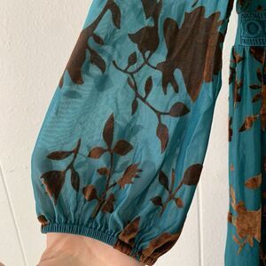 Baltic Born Womens XL Dress Teal Floral Velvet Sheer Sleeves Maxi Dress