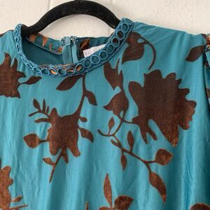 Baltic Born Womens XL Dress Teal Floral Velvet Sheer Sleeves Maxi Dress. Very good used condition, no flaws. See photos for full details.