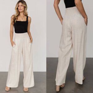 Baltic Born high rise smocked elastic waist wide leg linen blend pants size M
