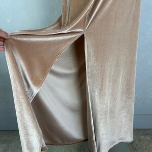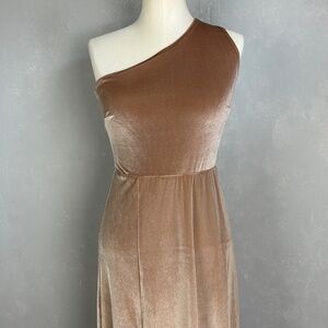 Baltic Born size M Tatiana velvet maxi dress one shoulder tan side slit