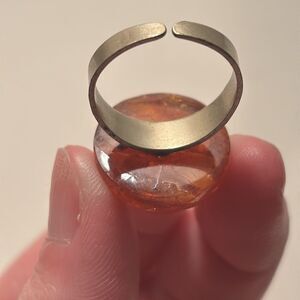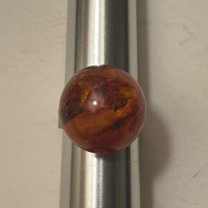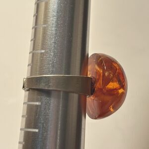 Baltic Amber Domed Circular Silver Tone Ring Size 7.5