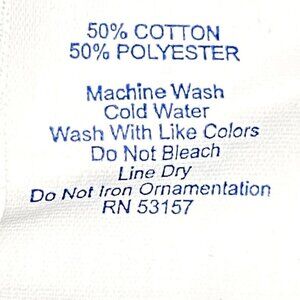 Care instructions: Wash inside out -- Machine wash cold gentle with similar colors -- No fabric softener -- Do not bleach -- Tumble dry low gentle, remove promptly -- Do not iron decoration -- Do not dry clean --