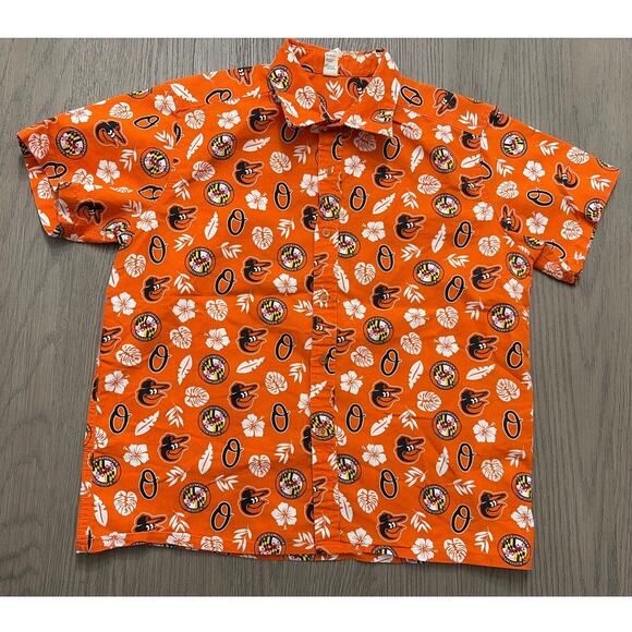 Baltimore Orioles Orange S/S Hawaiian Button Up Shirt Medium