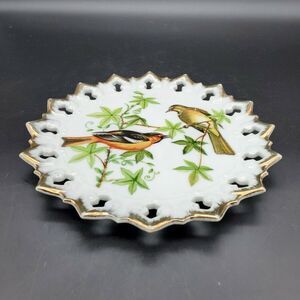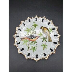 Gorgeous Reticulated Porcelain Wall Plate with Baltimore Orioles. It is gold trimmed. It is beautiful. It is in exceptional condition! No chips, cracks, or repairs. Measurements are inside the photos. Item is sold as is. Please ask all questions before purchase.