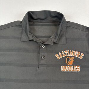 Baltimore Orioles Stitches Polo Short Mens M Black Striped Short Sleeve