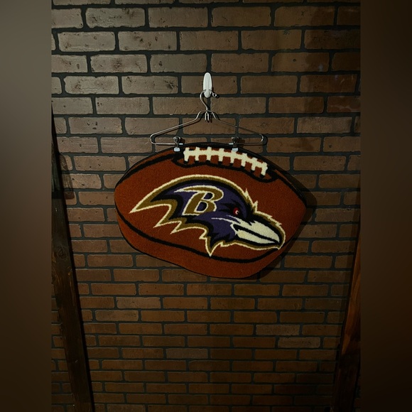Baltimore Ravens Football Shaped Rug. Normal wear no imperfections