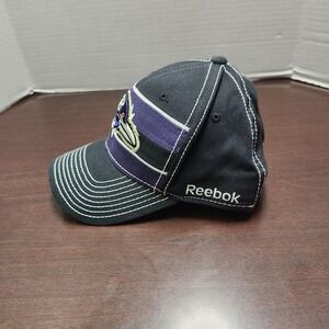 Features: Embroidered Ravens bird head logo on front with RAVENS text; Reebok wordmark on side; curved brim; six-panel construction with embroidered eyelets