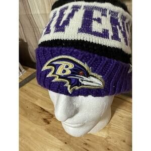 Baltimore Ravens Knit Beanie Cap Pom Hat Purple Black 47 Brand NFL