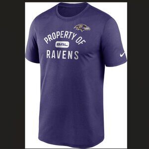 This is a Nike Legend "Property Of" tee for men, officially licensed by the Baltimore Ravens in the National Football League (NFL).