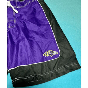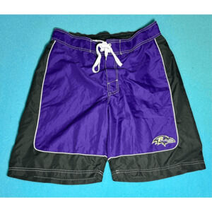 Baltimore Ravens NFL Black & Purple Swim Trunks Board Shorts Embroidered Sz M.