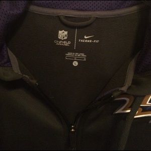 This Baltimore Ravens Nike Therma-fit jacket is lightweight, perfect for working out or just casual wear. This is on on-field product, so it is made exactly like what the players on the field wear.