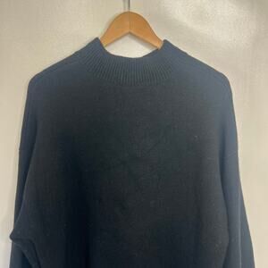 Balwin Women's Black Wool Sz L Oversized Hi-Low Mock Neck Pullover Sweater Warm