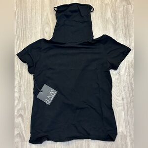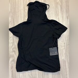 NWT BAM BY BETSY ADAM SHORT SLEEVE ATTACHED FACE MASK T-SHIRT SZ XS BLACK
