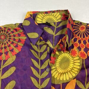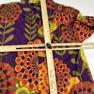 Bam Bam Boho Button Shirt Retro Floral Mod Print 3/4 Sleeve Festival Blouse L
