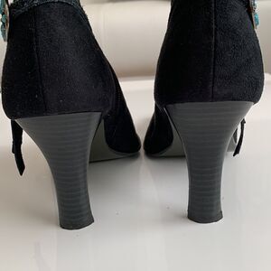 BamBoo black with fabulous faux turquoise jewelled western details around the ankle square toe,side zipper, heeled boots. Size 7