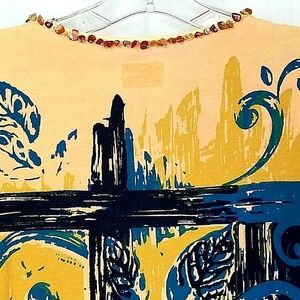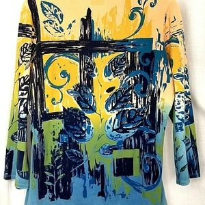 BamBooco women's embellished top size L multi color beaded decals stone trim neckline