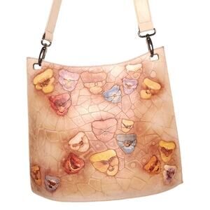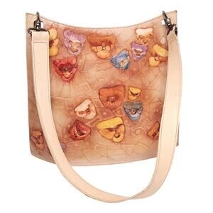 Bambas Art Designer Genuine Leather Handbag Hand Painted Engraved Tote Bucket