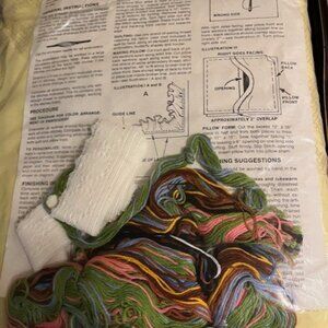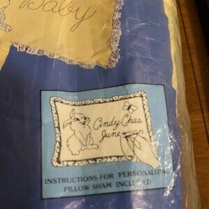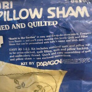 This Paragon embroidery kit makes a cross stitched quilt for baby's crib. Unlike many other crib quilt kits, this one is not pre-quilted, meaning that the back side of the quilt will not show the wrong side of the embroidery once the batting and backing have been applied. First you cross stitch the design, then you quilt it on the outlining marks provided. Kit contains quilt top, backing fabric, batting, floss, instructions, and materials to complete matching sham. Kit has been opened, but appears to be complete except for a needle.