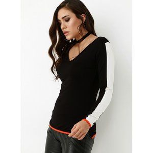Bambina Mia - Color Block Contrast Hem V-Neck Top