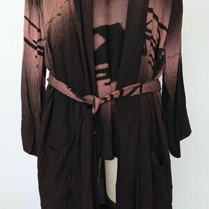 Bamboo brand 100% rayon top and duster set with belt. No size tag, see measurements for best fit. Art to wear lightweight breathable textured knit. New without tags, no flaws noted.